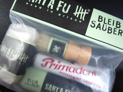 Sauber bleiben! Das Pflege-Set Santa Fu… Wenn Sie Herrenpflege-Serien hassen und trotzdem nicht stinken und nicht kratzen wollen: Seife, Zahnpasta, Rasierpinsel und Rasierseife aus der Justizvollzugsanstalt Fuhlsbüttel. Dieselben ehrlichen Produkte, die auch die Gefangenen benutzen.