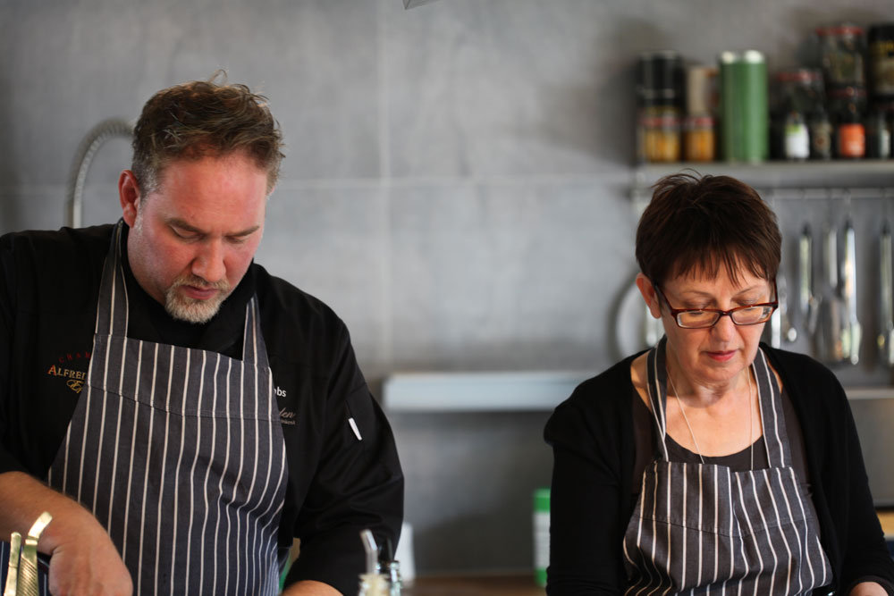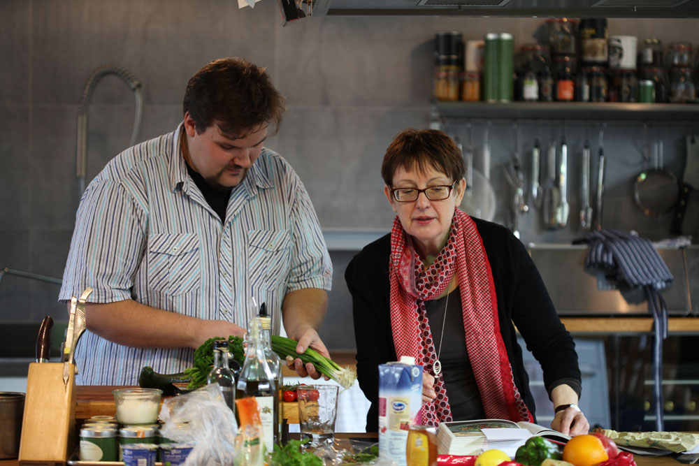Mit am Kochtopf: Mechthild Römer und Dennis Hasemann